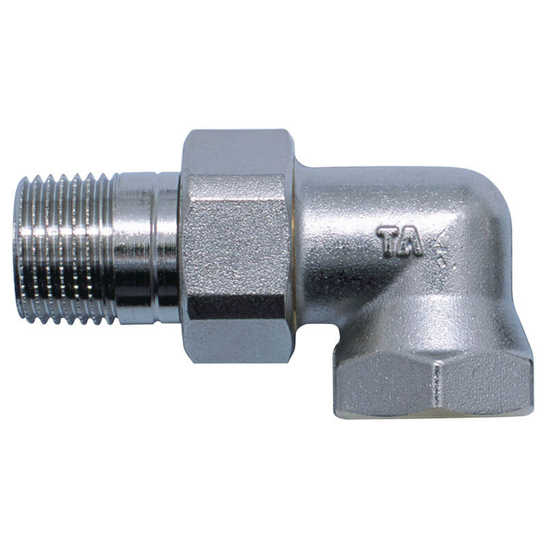 для компенсации несоосности труб и клапанов при замене радиаторов. Никелированная бронза.